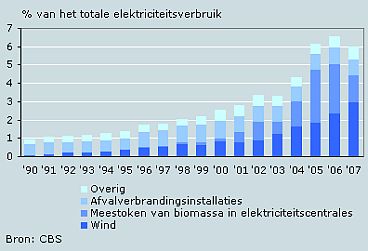 Overigens meldde het CBS vorige week dat in 2007 de productie van duurzame elektriciteit in Nederland gedaald is: