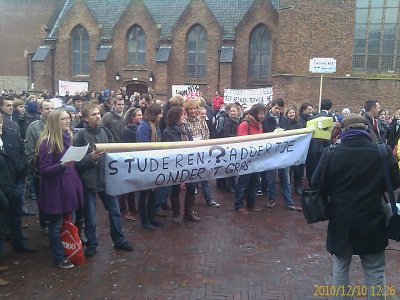 Het kabinet Rutte wil langstudeerders aanpakken. Eèn jaar vertraging ten opzichte van de nominale studieduur gaat je 3000 euro extra collegegeld kosten. Dat getuigt wel van lef met een minister van Economische Zaken in je gelederen die 11 jaar deed over het afronden van een studie geschiedenis. Ik was vanmiddag op de markt in Wageningen, waar de hard werkende student tussen de colleges door even kwam demonstreren