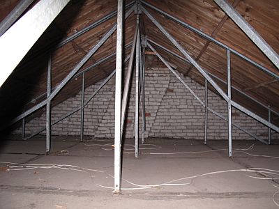 De vloer van de vliering bestaat uit een vlasschevenplaat, die tegelijkertijd de isolatielaag vormt. bij de renovatie in 1980 zijn gipsplatenplafonds aangebracht ter verbetering van de brandveiligheid.